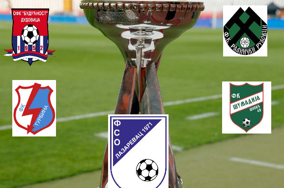 Ове сезоне четири клуба бориће се за победнички пехар у такмичењу за Куп Србије на територији Фудбалског савеза општине Лазаревац. Познато је да ће се за трофеј надметати клубови који се тренутно такмиче у Првој „Б“ београдској лиги: Турбина (Вреоци), Раднички (Рудовци), Шумадија (Шопић) и прошлогодишњи финалиста ОФК Будућност из Дудовице. Полуфинални дуели предвиђене су за среду 10.маја, док ће се финална утакмица одиграти 3.јуна. Победник ће наставити такмичење у Купу на подручју ФС Београда.